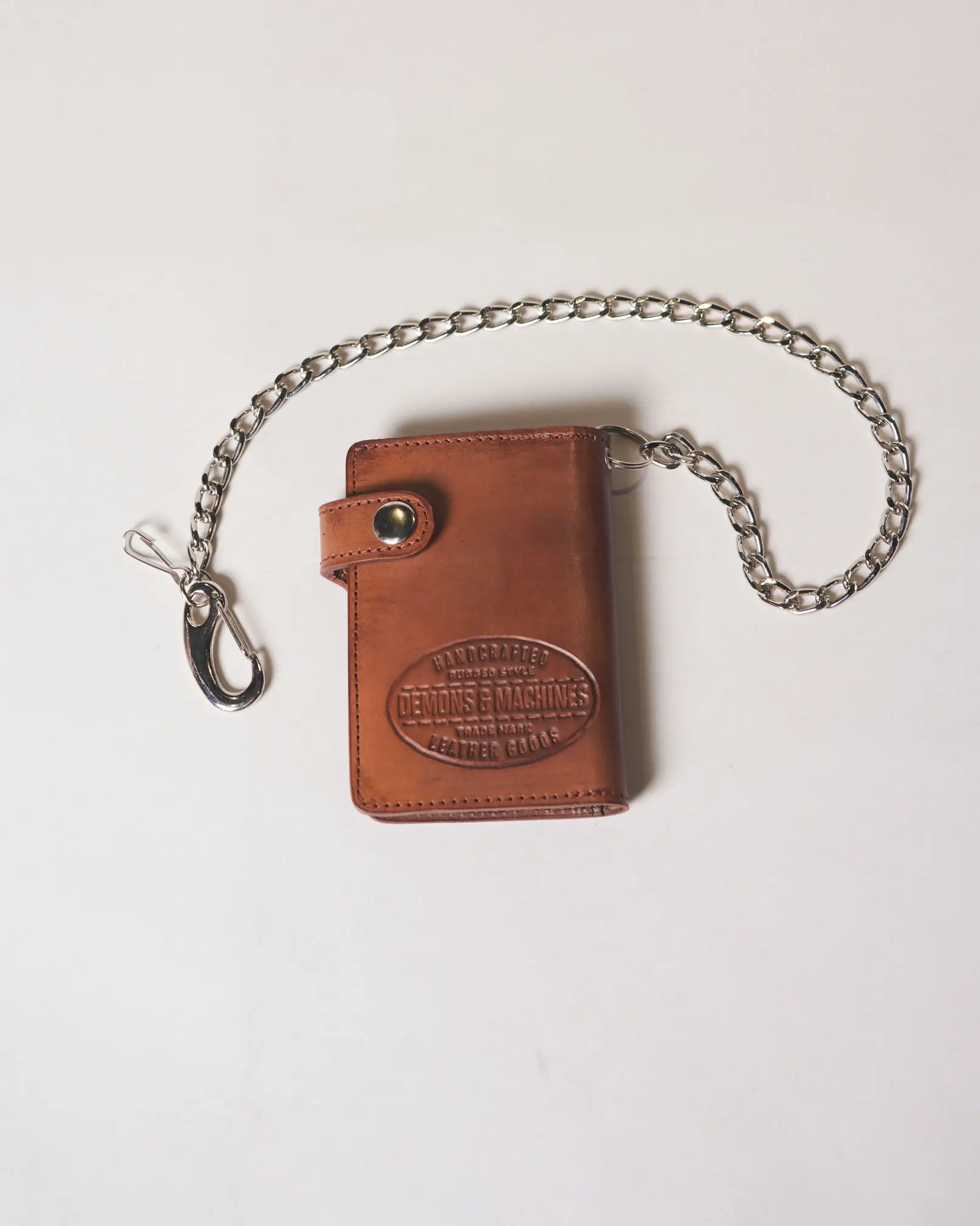 Billetera de cuero vacuno con compartimentos para billetes y tarjetas. Cuenta con cadena de aluminio. Cada billetera se realiza a mano.