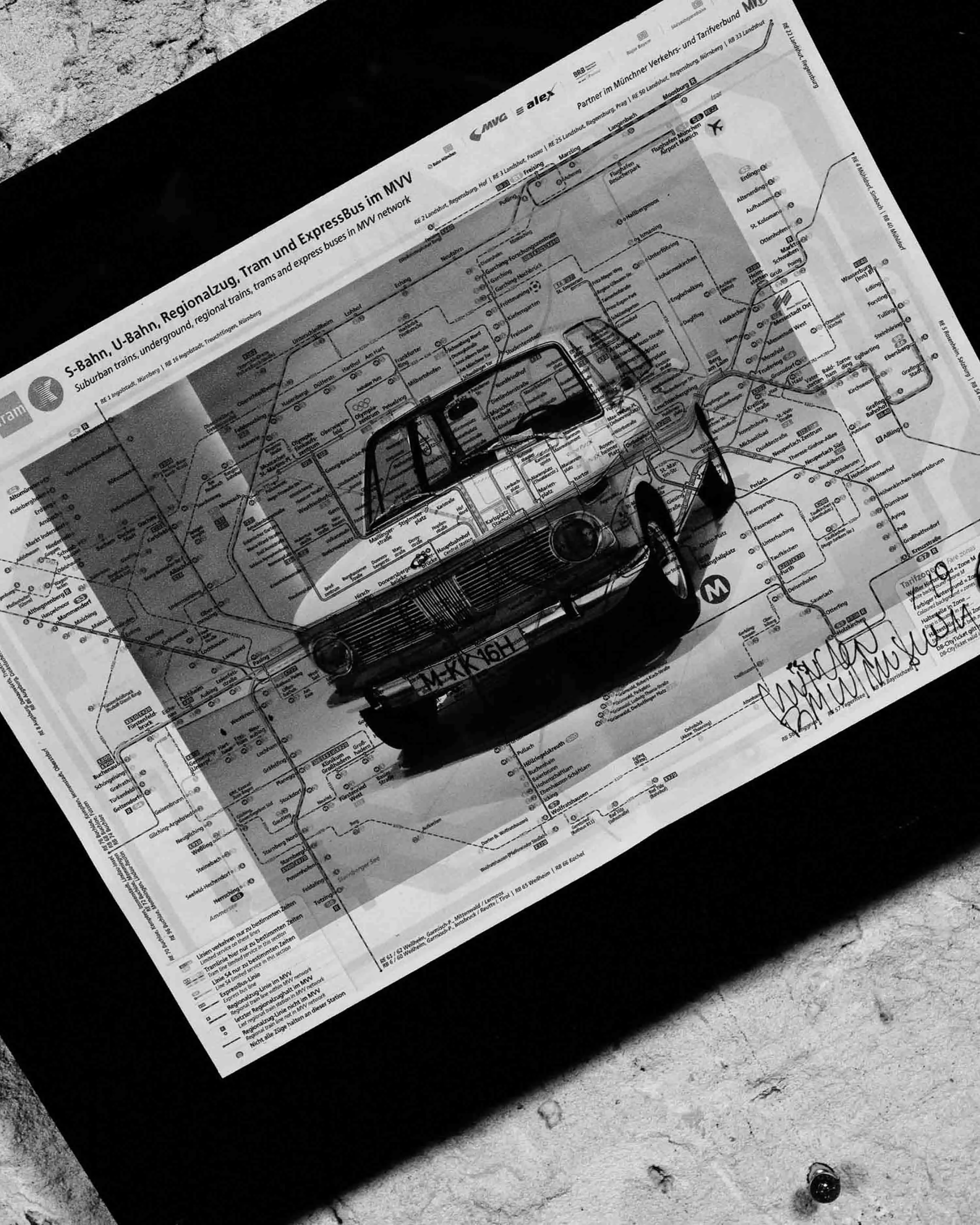 Serie de fotografías impresas en mapa original de U-Bahn de Múnich.