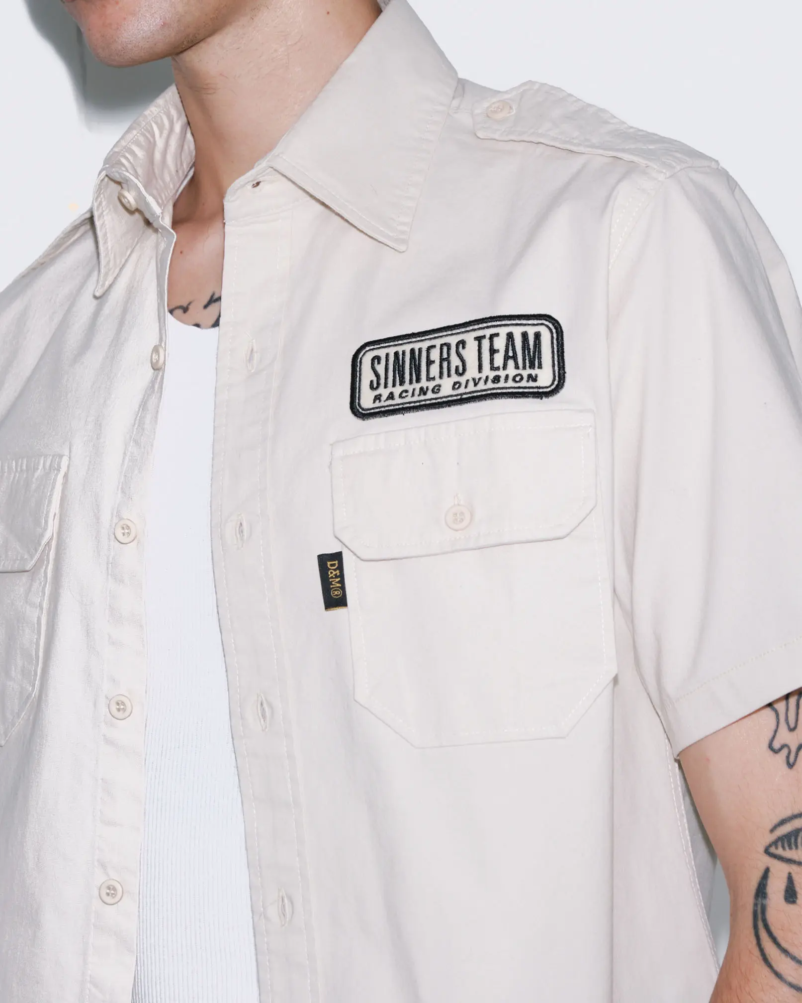 Camisa confeccionada en poplin de algodón elastizado. Bolsillos plaqué con tapa al frente y charreteras con botón en hombros.
