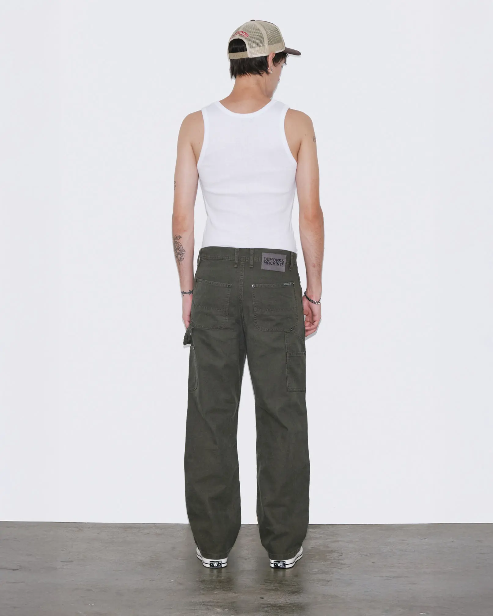 Pantalón modelo carpintero confeccionado en canvas pesado de algodón.