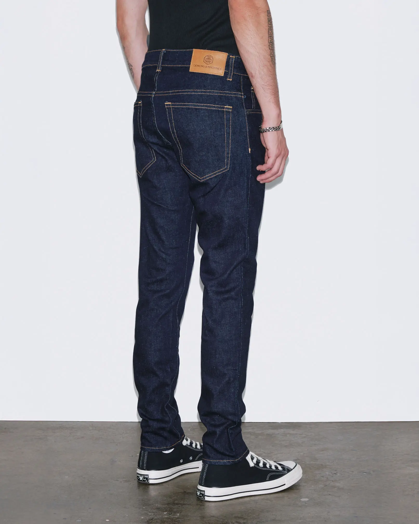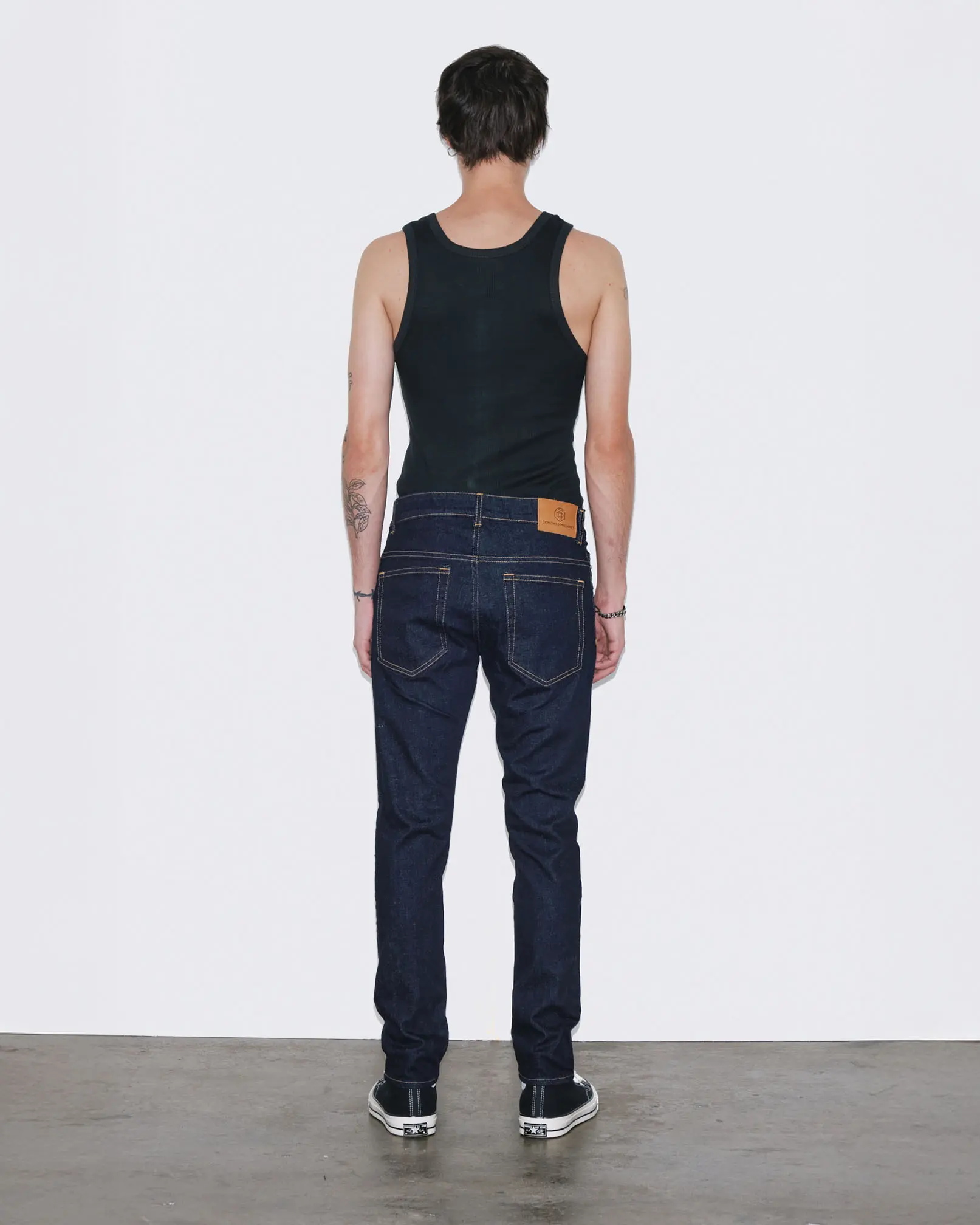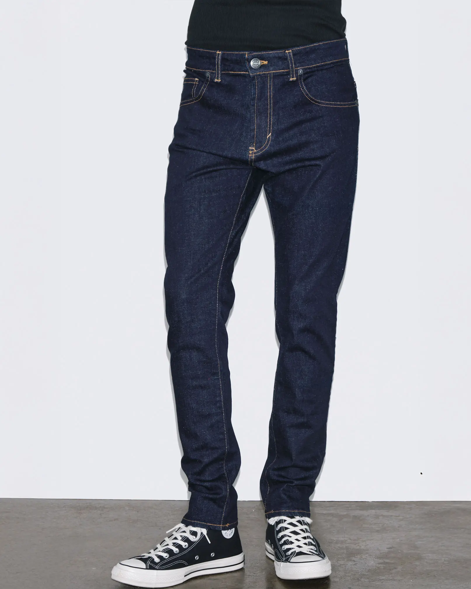 NEW JERSEY es nuestro jean de calce skinny confeccionado en denim elastizado importado de Turquía. Este fit es de tiro medio y queda entallado en piernas, acompañando el cuerpo sin pegarse excesivamente. La tela base, tejida en Turquía, es un gran diferencial en este modelo aportando comodidad, alta elasticidad y un tacto único. Su lavado raw original blue tiene una apariencia y tacto bien natural resaltando y jerarquizando la calidad del tejido, manteniendo el tono oscuro de manera uniforme.
