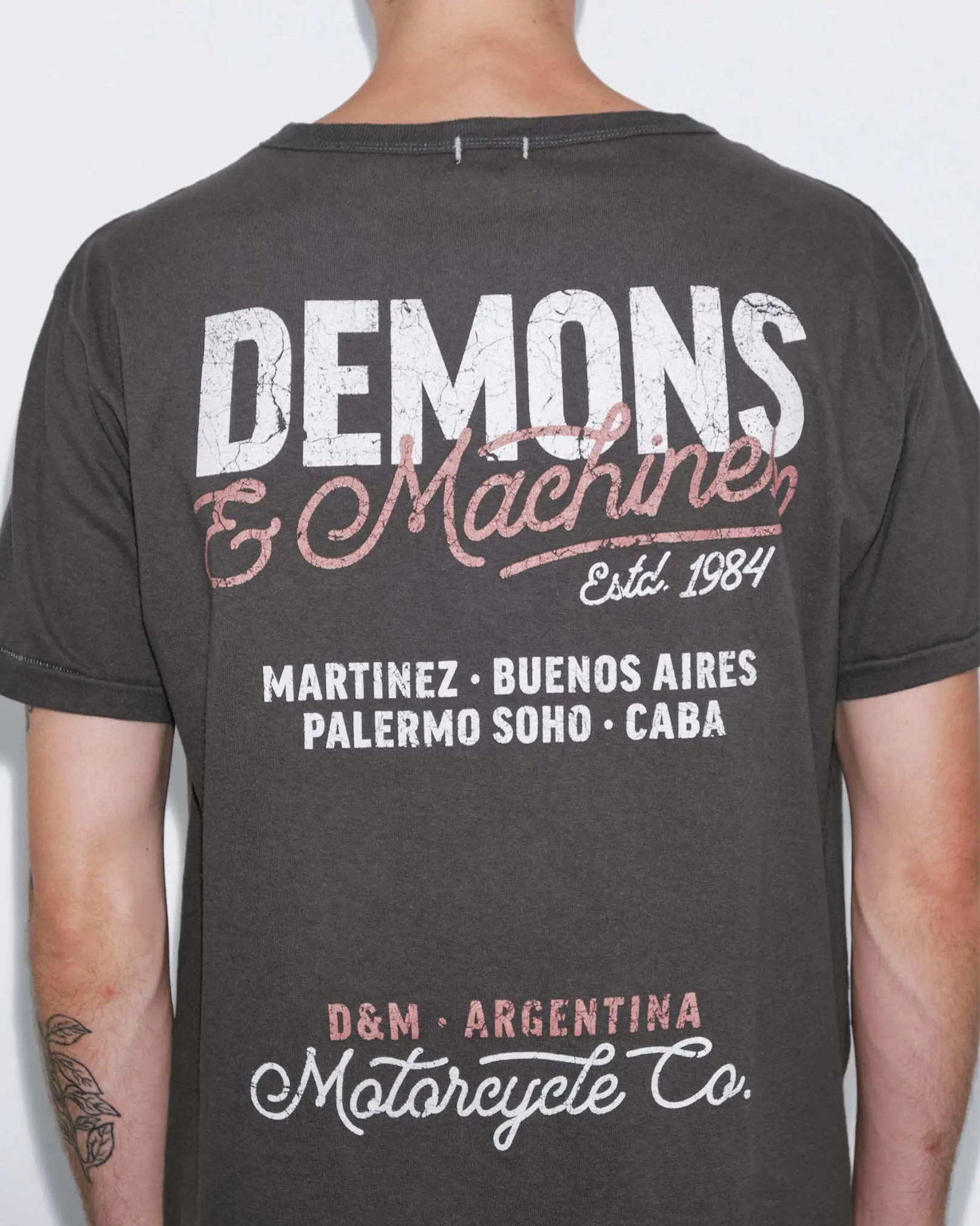 Remera manga corta confeccionada en Jersey 16/1 de algodón peinado. Calce slim y cuello terminado en collareta con complemento ribb. Bolsillo plaqué al frente. Terminaciones de mangas y ruedo en dobladillo con costura india. Suavizado sobre prenda terminada. Estampa al frente y en espalda en técnica serigrafía con relieve engomado. Composición: 100% Algodón