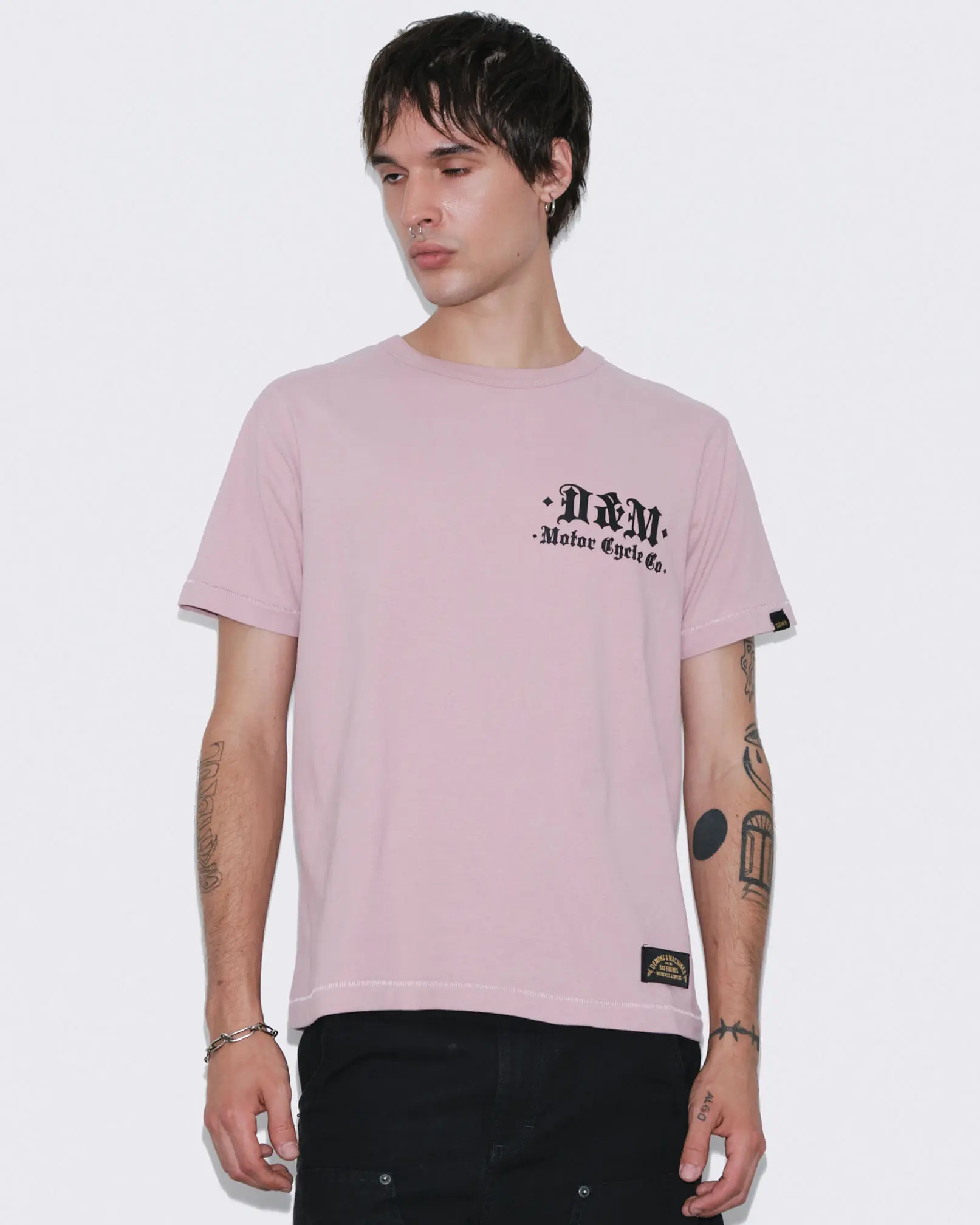 Remera manga corta confeccionada en Jersey 16/1 de algodón peinado. Calce slim y cuello terminado en collareta con complemento ribb. Bolsillo plaqué al frente.