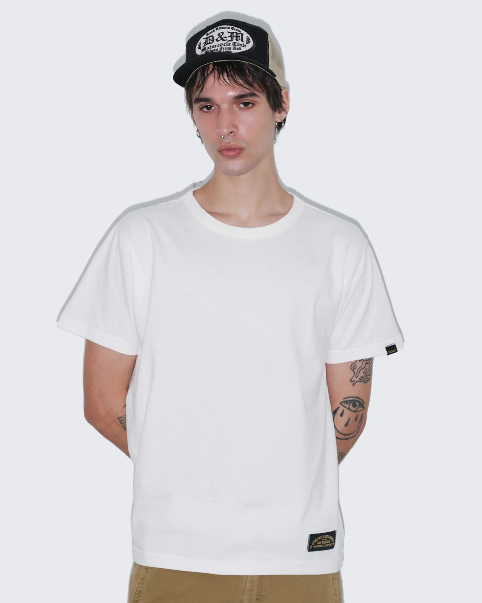 Remera manga corta confeccionada en Jersey 16/1 de algodón peinado. Calce slim y cuello terminado en collareta con complemento ribb. Terminaciones de mangas y ruedo en dobladillo con costura india. Suavizado sobre prenda terminada. Composición: 100% Algodón