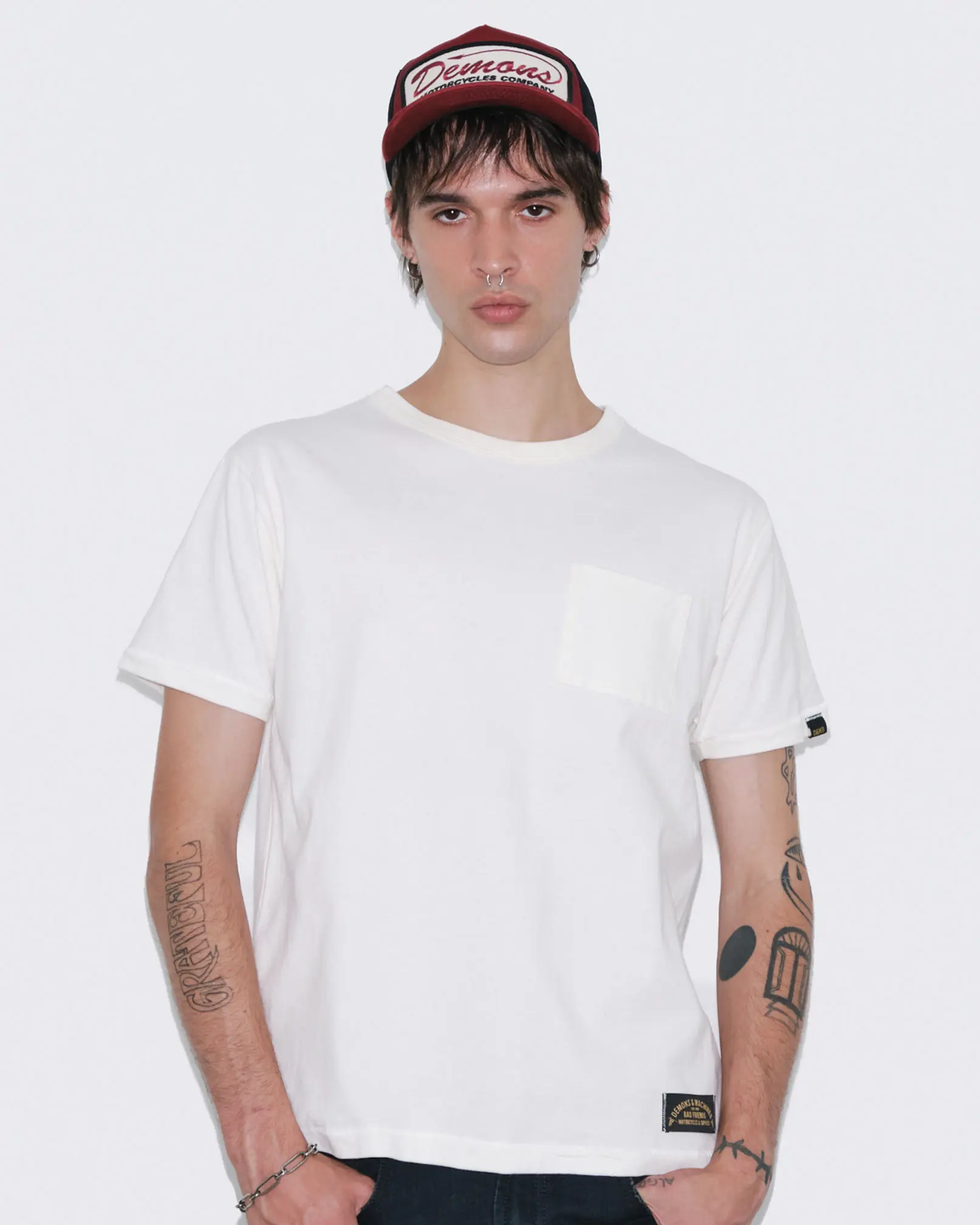 Remera manga corta confeccionada en Jersey 16/1 de algodón peinado. Calce slim y cuello terminado en collareta con complemento ribb. Bolsillo plaqué al frente. Terminaciones de mangas y ruedo en dobladillo con costura india. Suavizado sobre prenda terminada. Composición: 100% Algodón