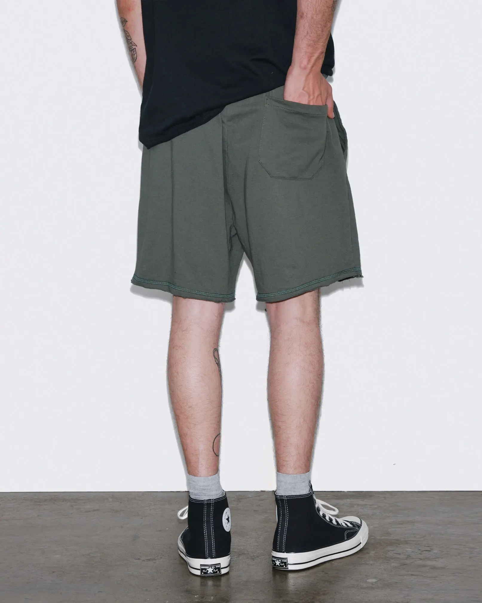 Bermuda de calce relajado, confeccionada en rústico de algodón liviano. Cintura elastizada con cordón para ajustar y ojalillos metálicos marcarios. Bolsillos laterales y bolsillo plaqué en trasero.