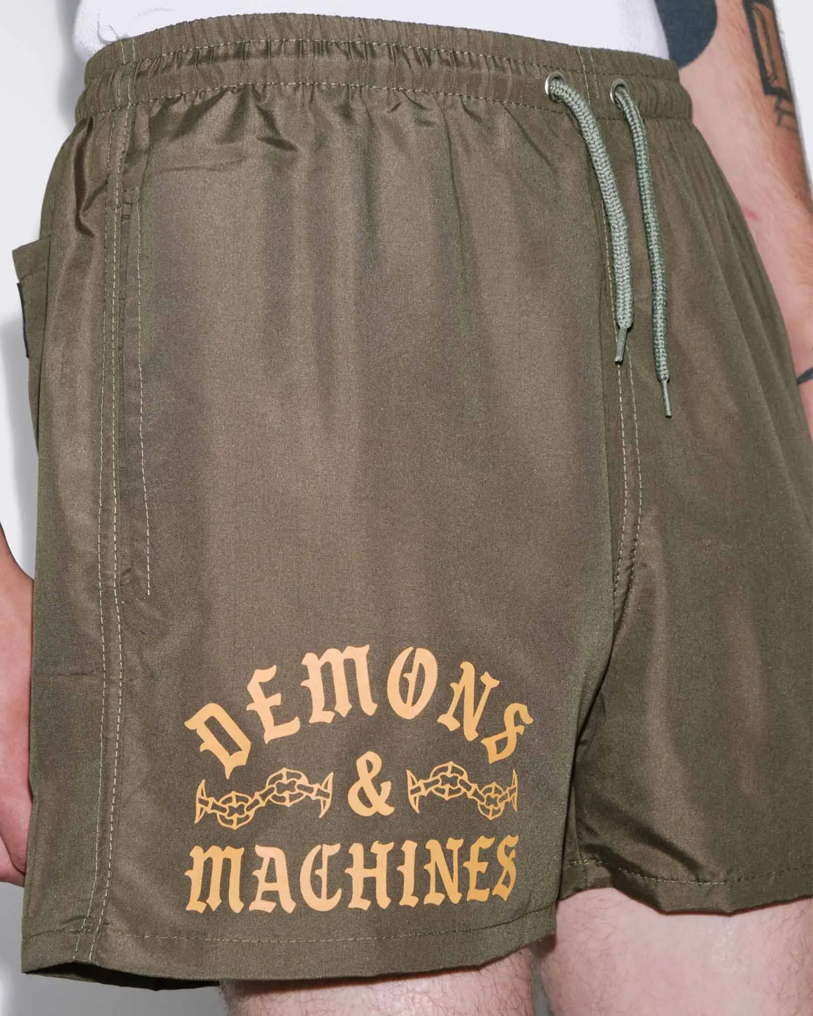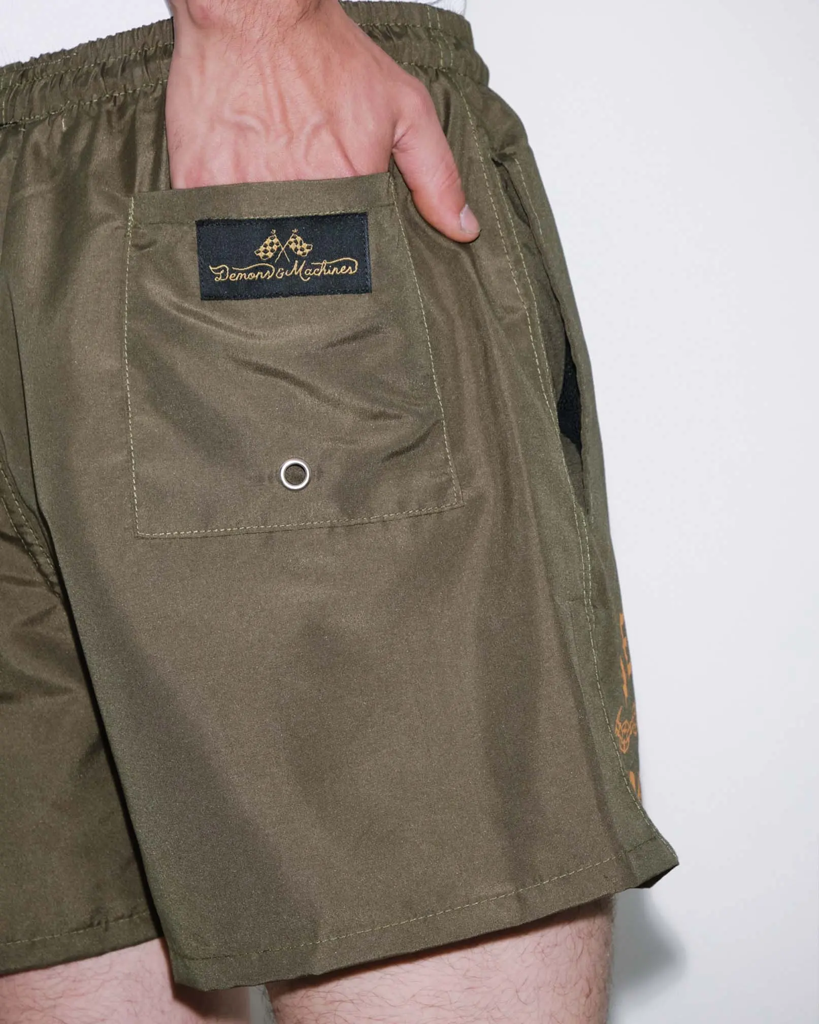 Short de baño confeccionado en microfibra, con interno de red. Cintura ajustable con elástico interno y cordón con puntera. Logo de marca bordado al frente en hilo negro.