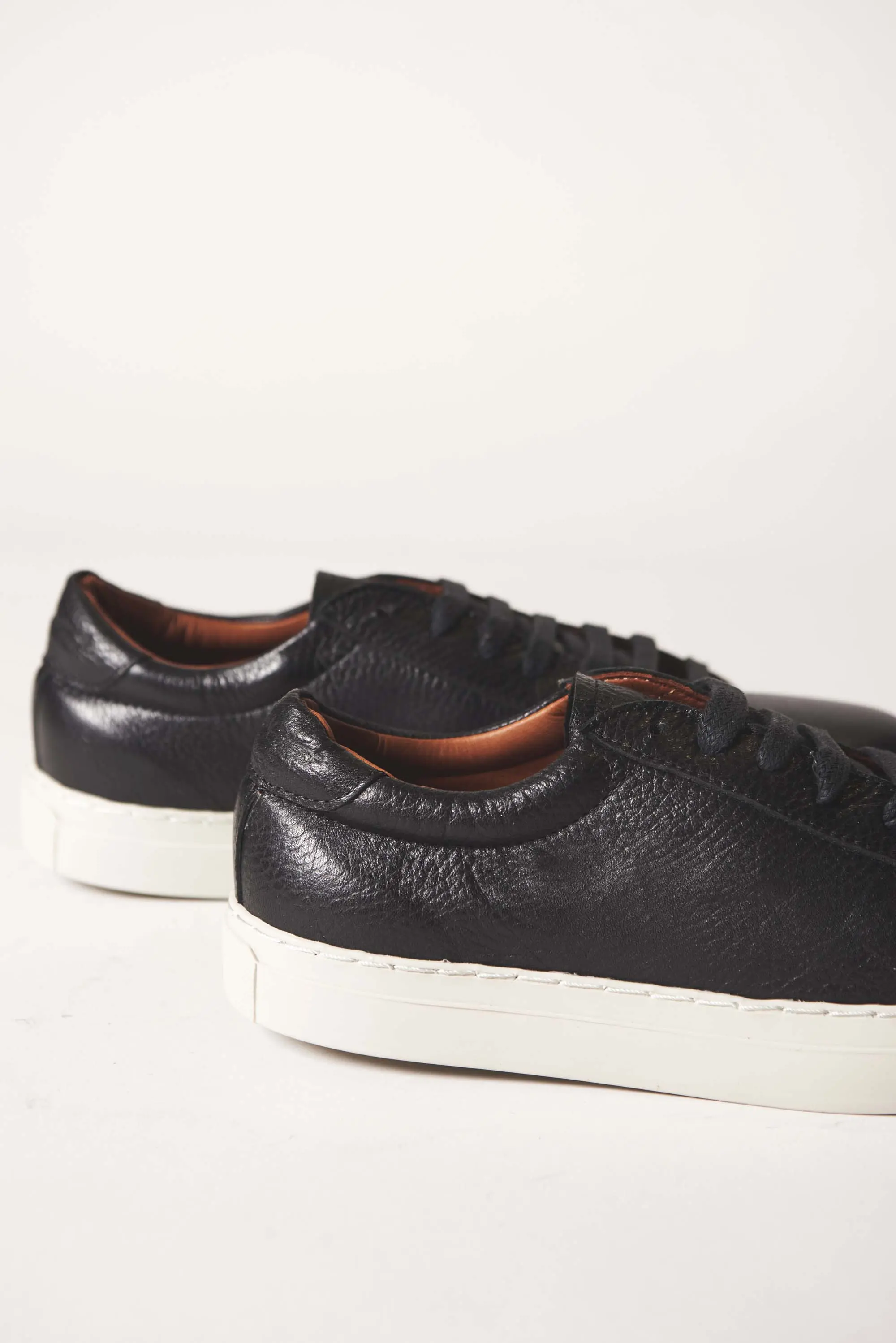 Zapatillas de caña baja en cuero vacuno con suela de caucho cosida. Cordones de algodón al tono, ojales simples con sacabocado y logo de marca grabado en bajo relieve en lengüeta y talón interno. Modelo clásico y urbano, con la altura estándar para el uso diario. Las variaciones de tono y textura del cuero son esperables en este tipo de material y reflejan la autenticidad y durabilidad del mismo.