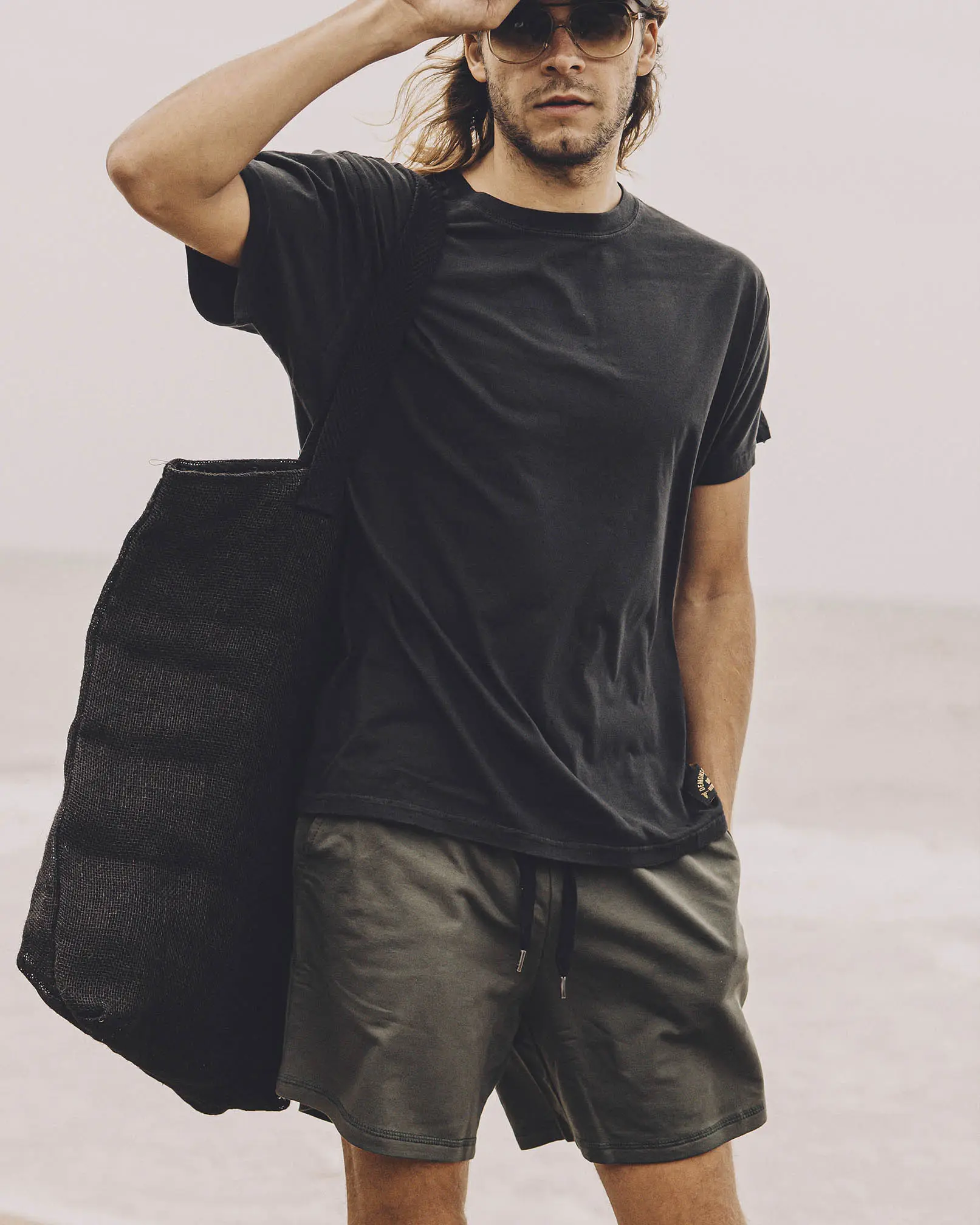 Bermuda de calce relajado, confeccionada en rústico de algodón liviano. Cintura elastizada con cordón para ajustar y ojalillos metálicos marcarios. Bolsillos laterales y bolsillo plaqué en trasero.
