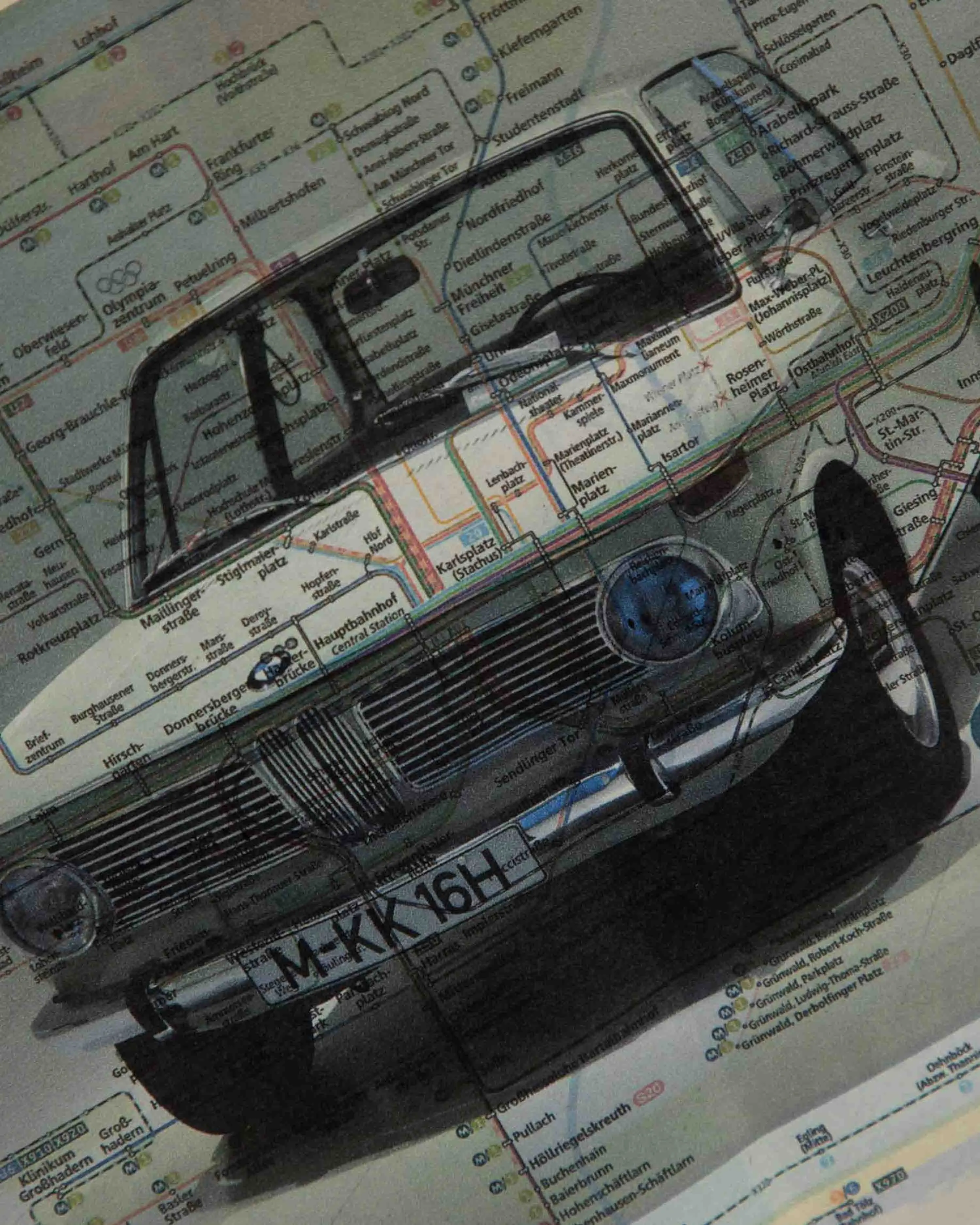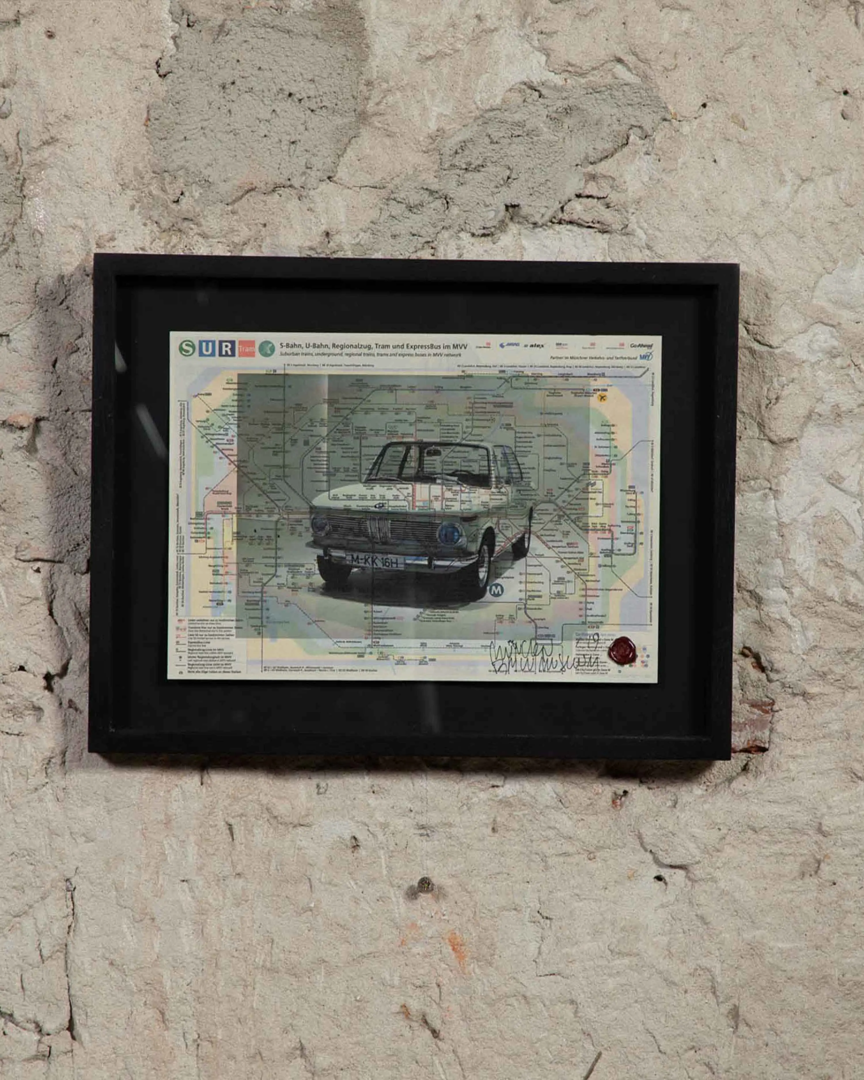 Serie de fotografías impresas en mapa original de U-Bahn de Múnich.