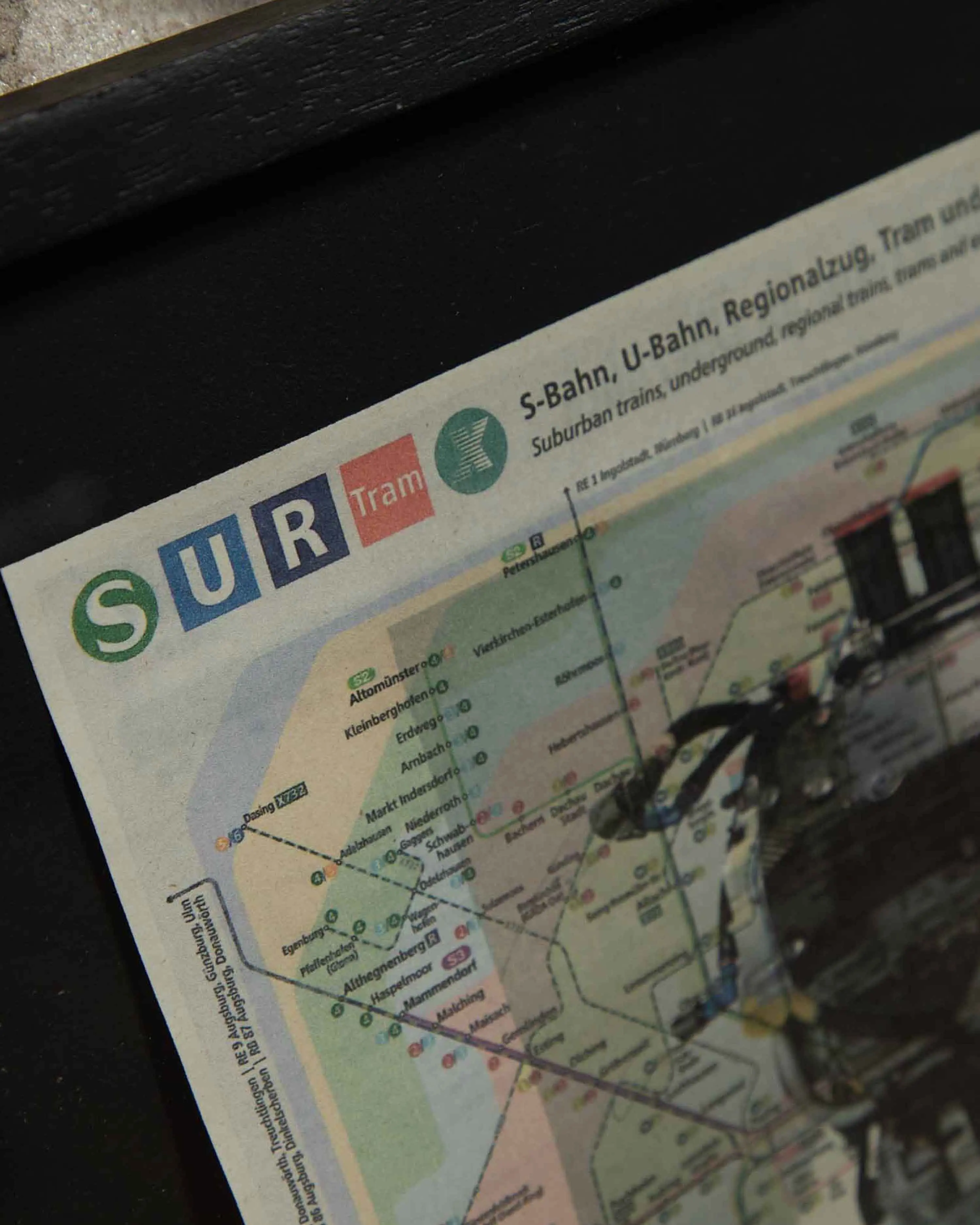 Serie de fotografías impresas en mapa original de U-Bahn de Múnich.