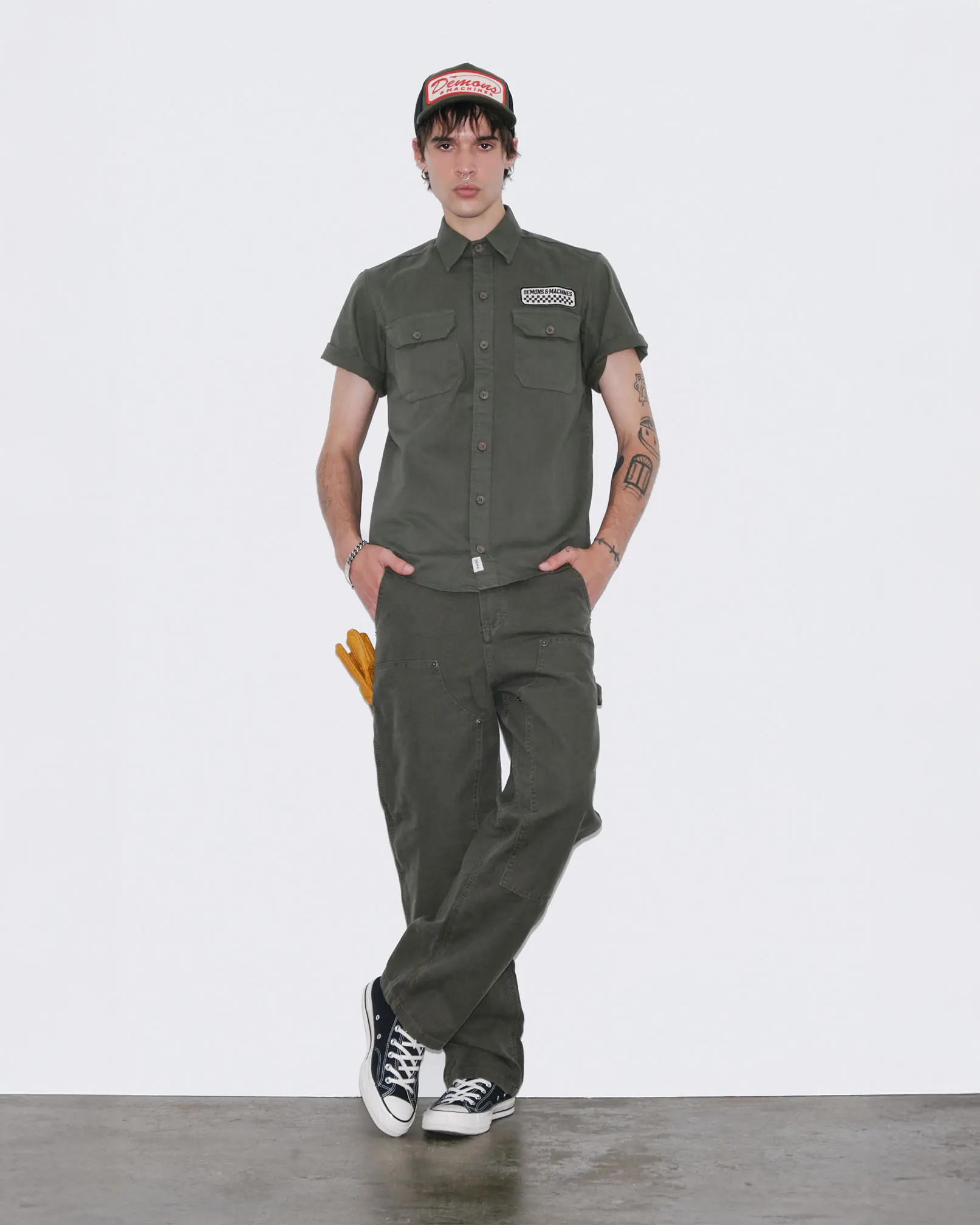 Camisa confeccionada en poplin de algodón elastizado. Bolsillos plaqué con tapa al frente y charreteras con botón en hombros.