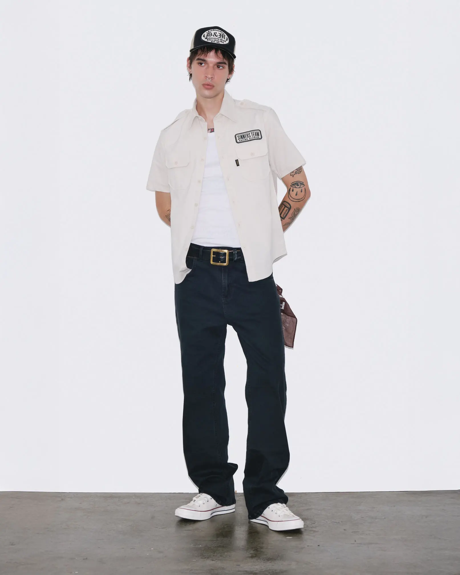 Camisa confeccionada en poplin de algodón elastizado. Bolsillos plaqué con tapa al frente y charreteras con botón en hombros.