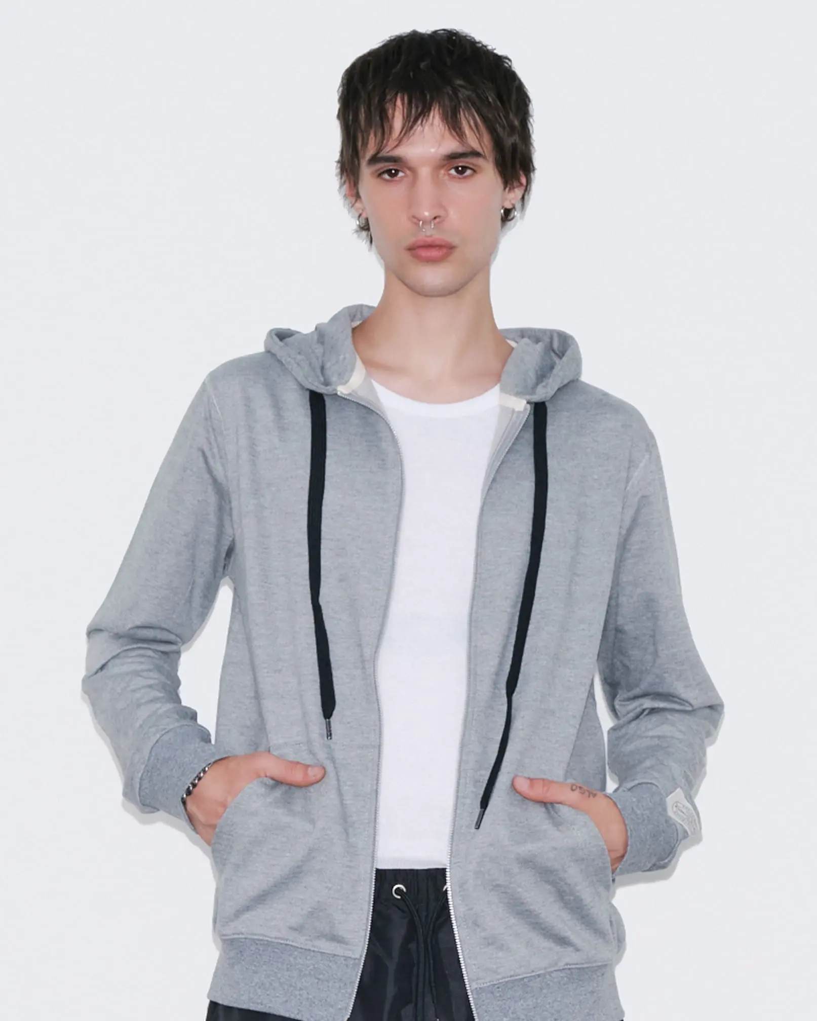 Buzo campera liviano confeccionado en rústico con puños en ribb al tono. Cierre metálico, capucha ajustable con cordón y bolsillo frontal.