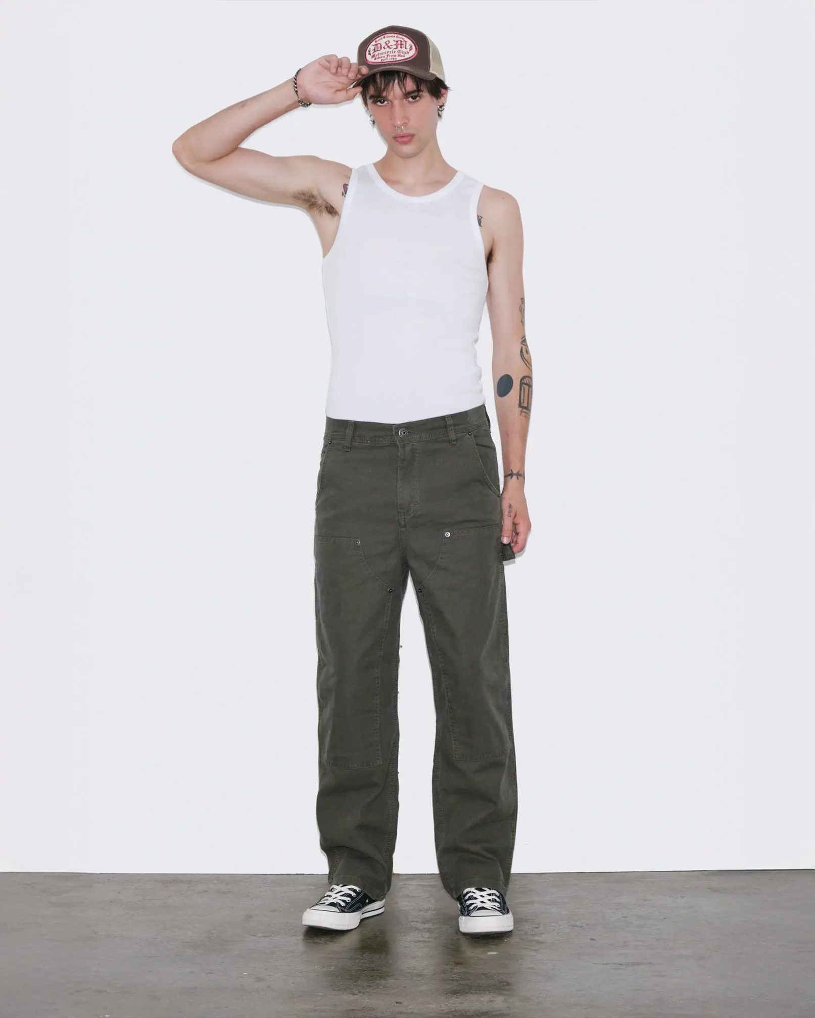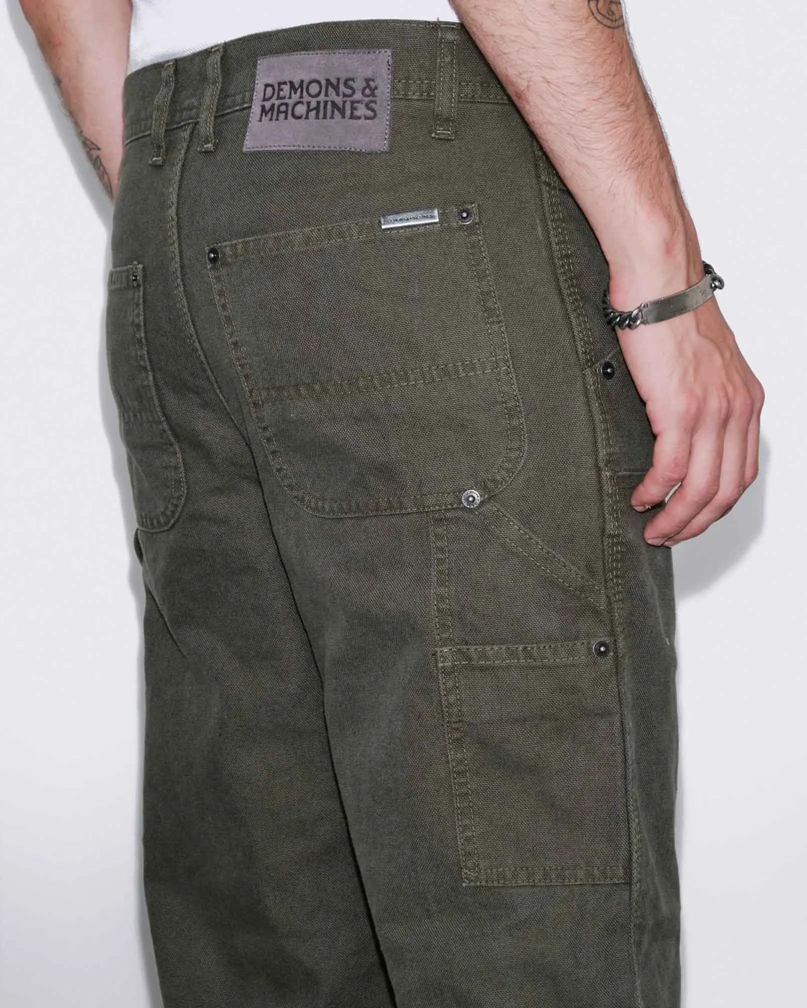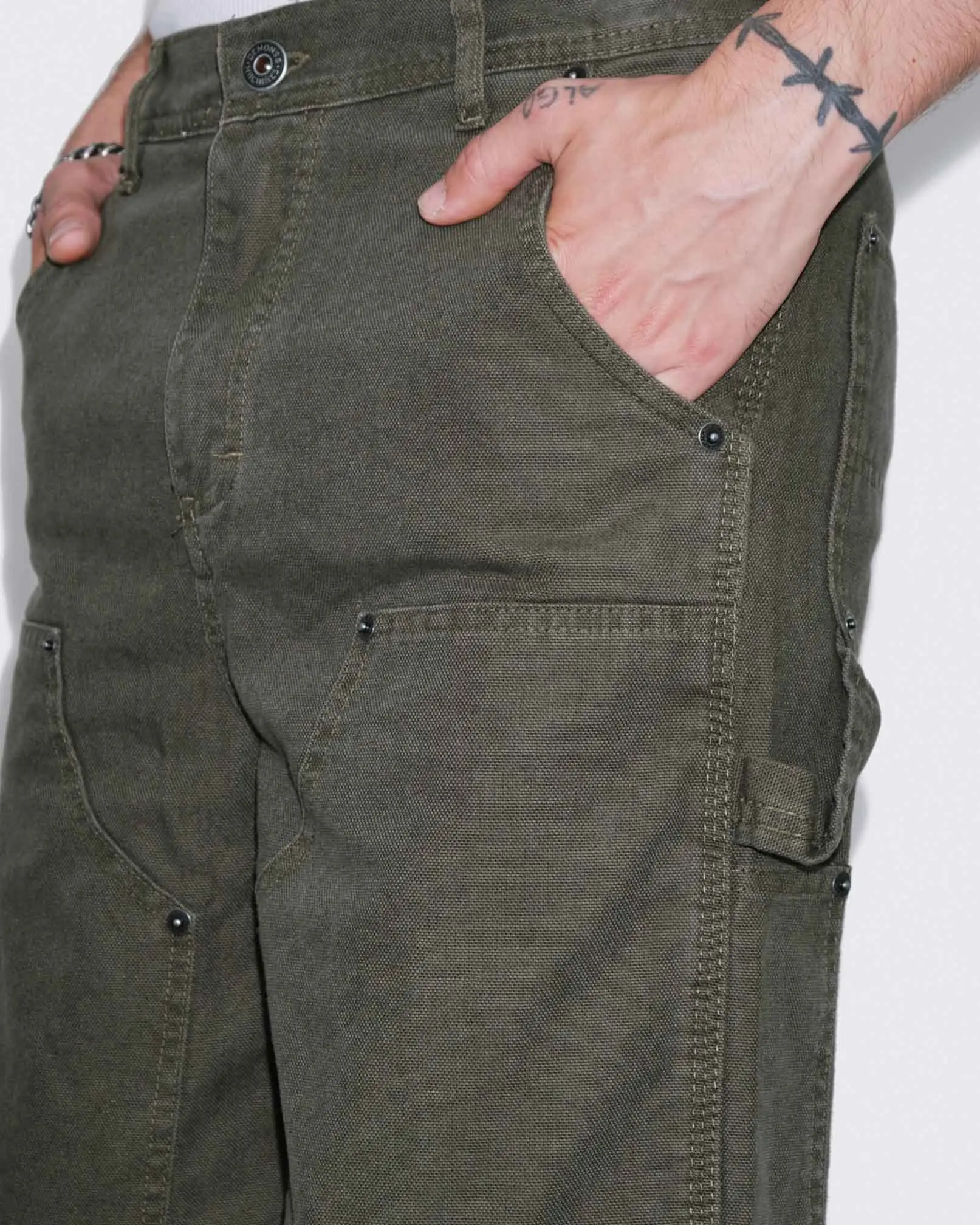 Pantalón modelo carpintero confeccionado en canvas pesado de algodón.