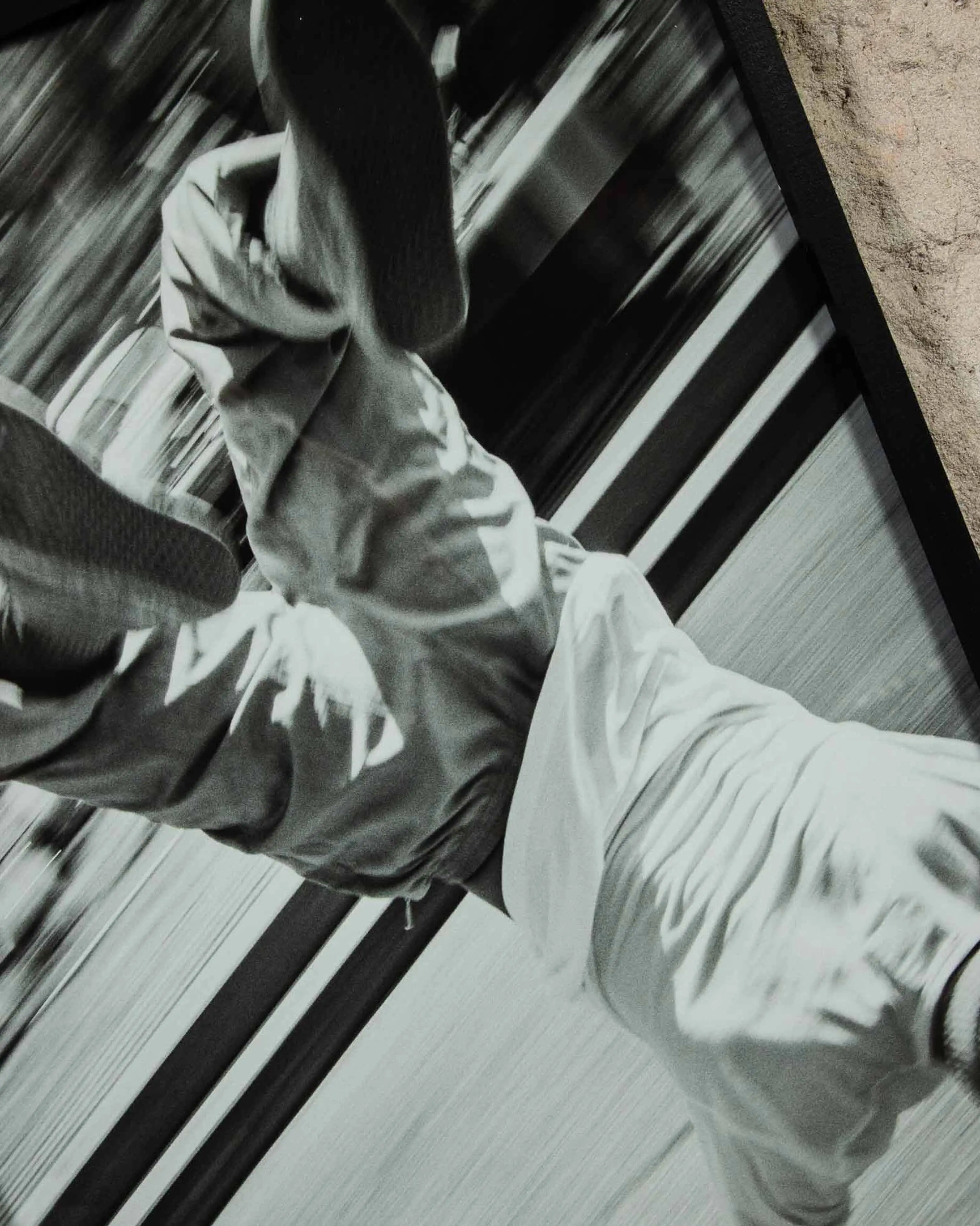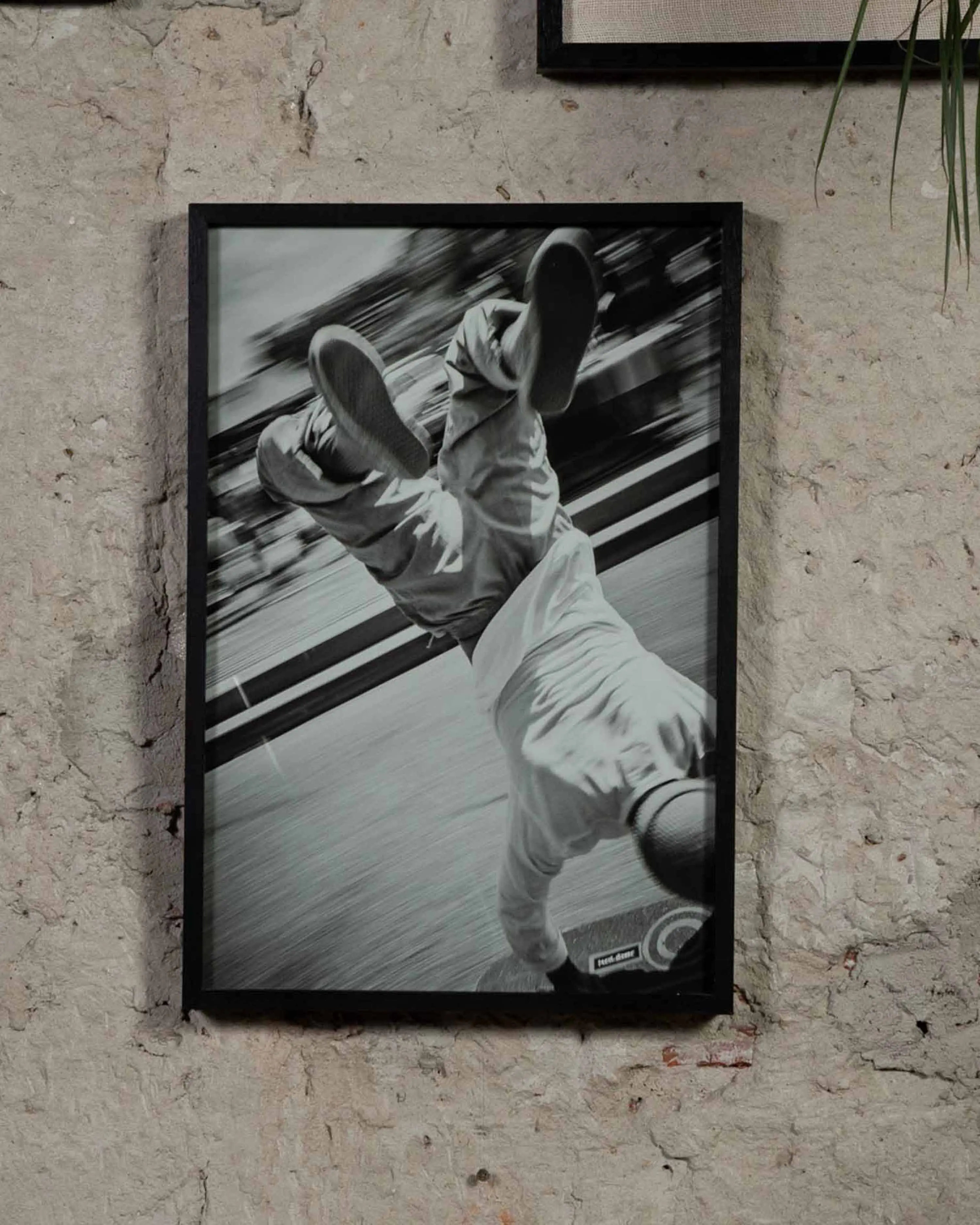 Un instante suspendido entre la caída y el vuelo. La velocidad y el movimiento se congelan en blanco y negro, capturando el vértigo de lo imprevisible. Se entrega con certificado de autenticidad.