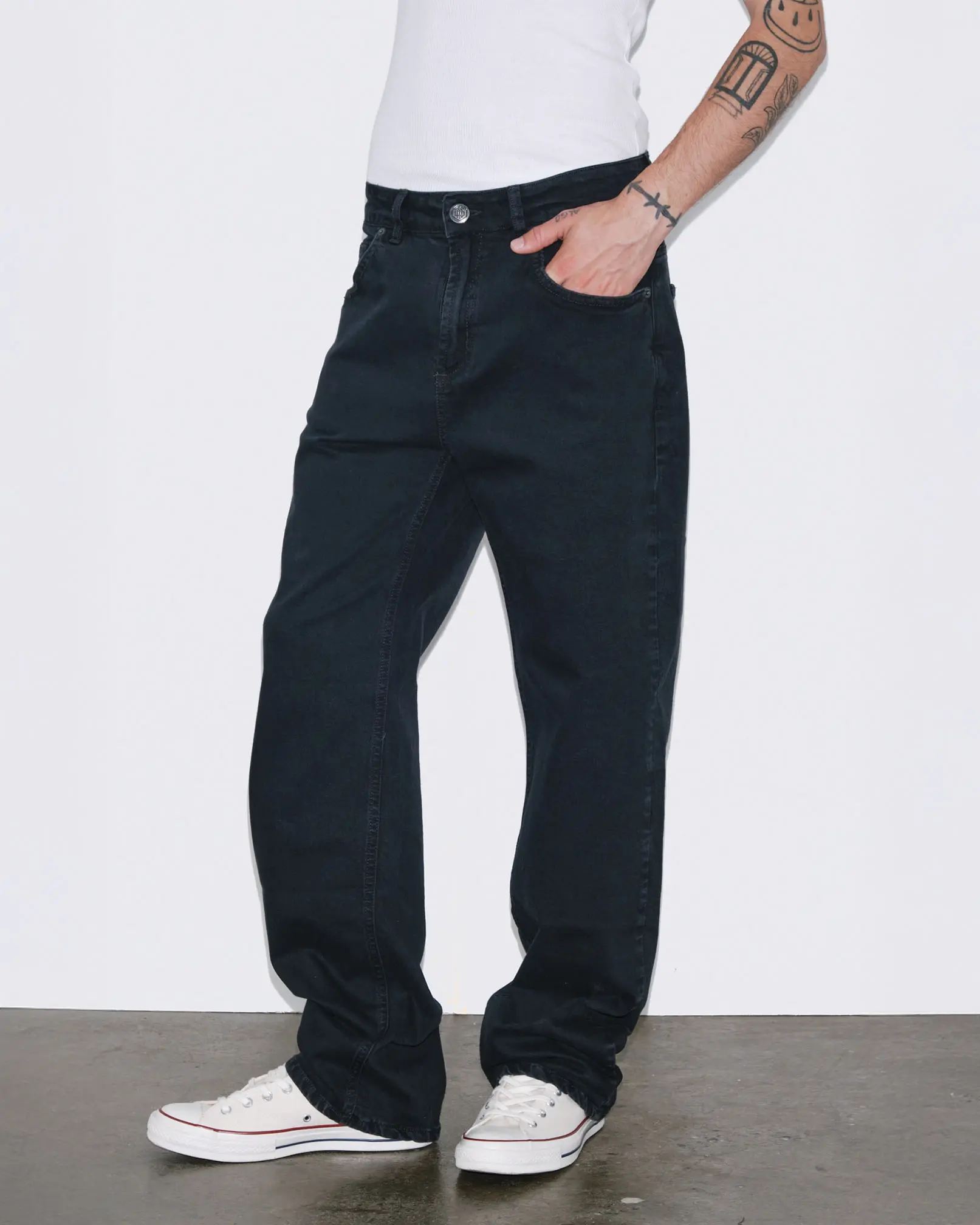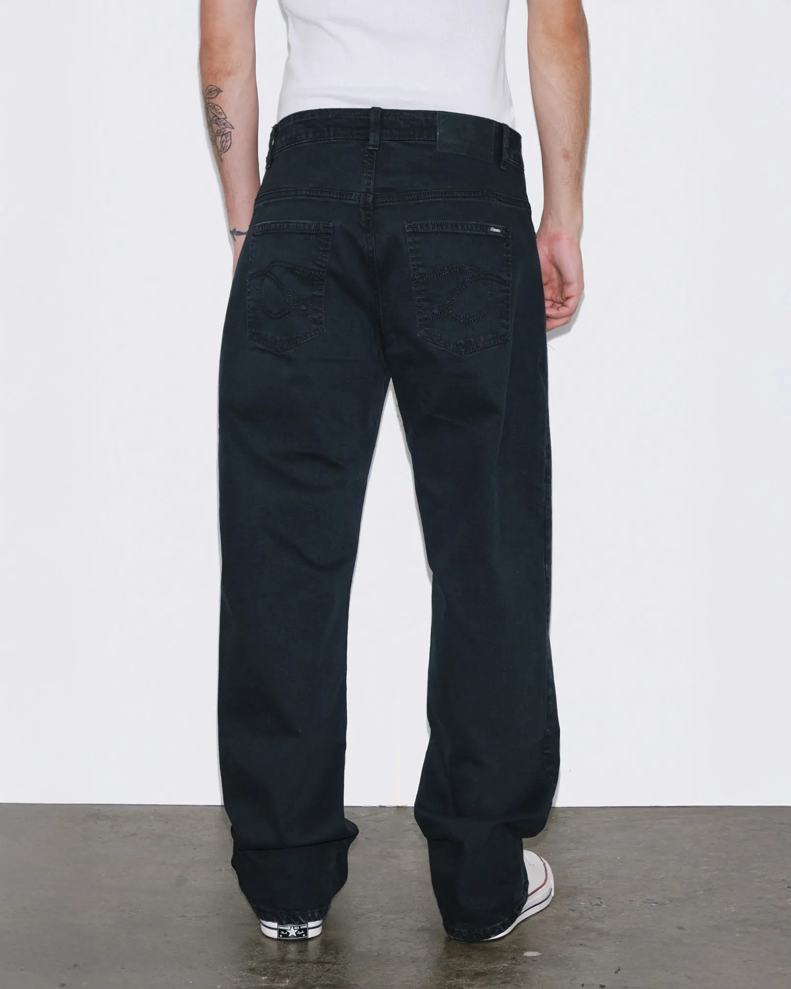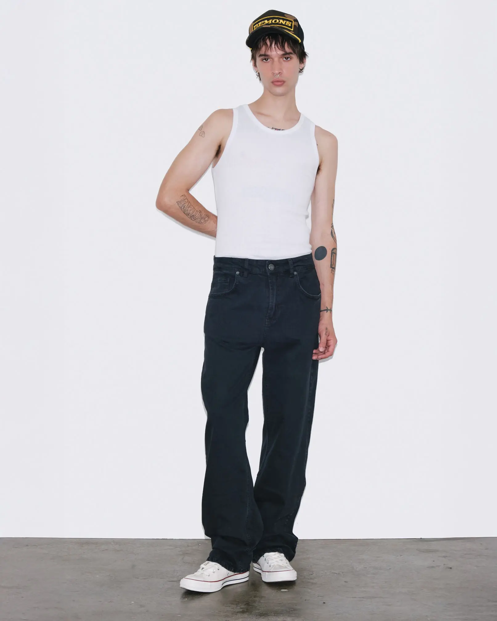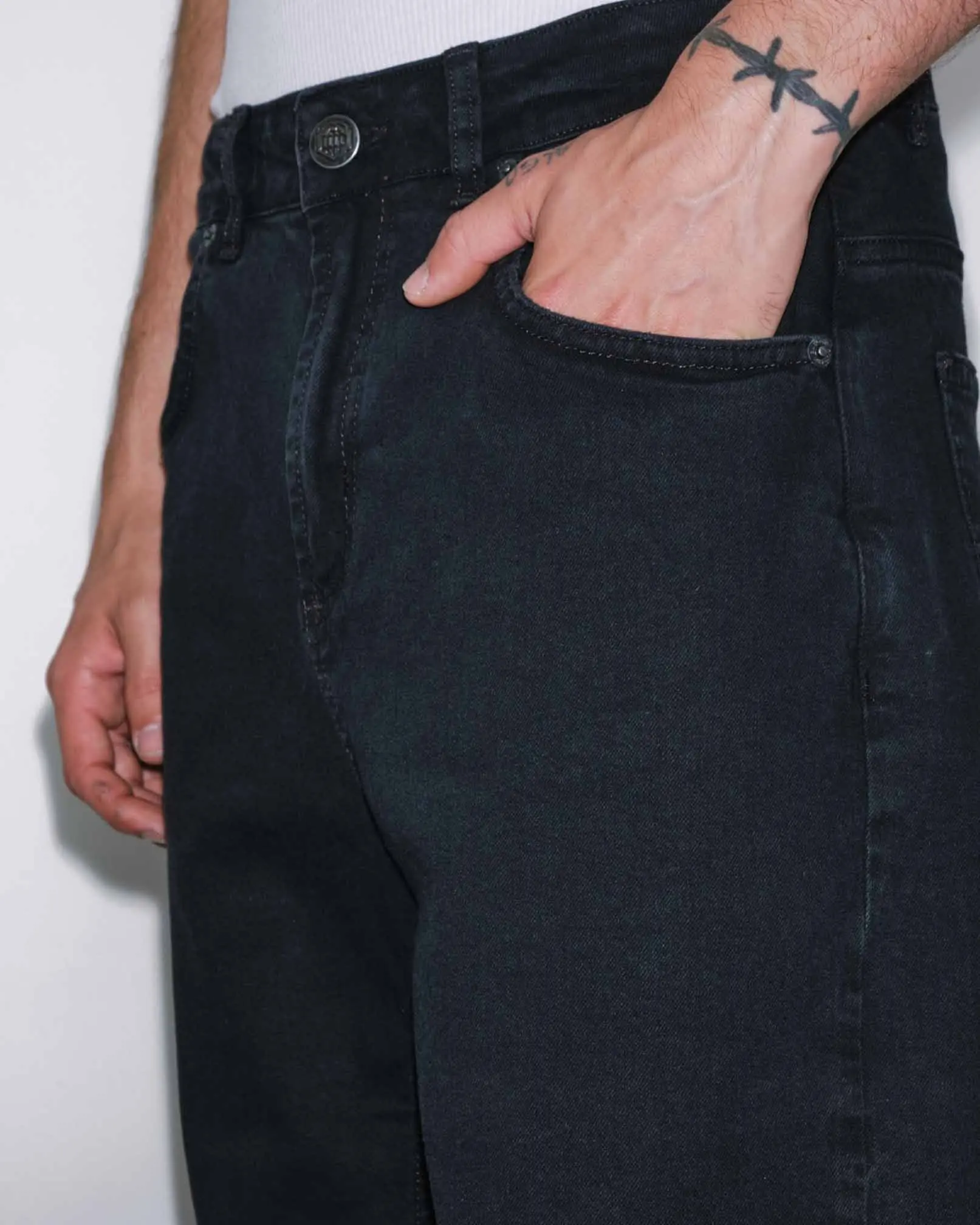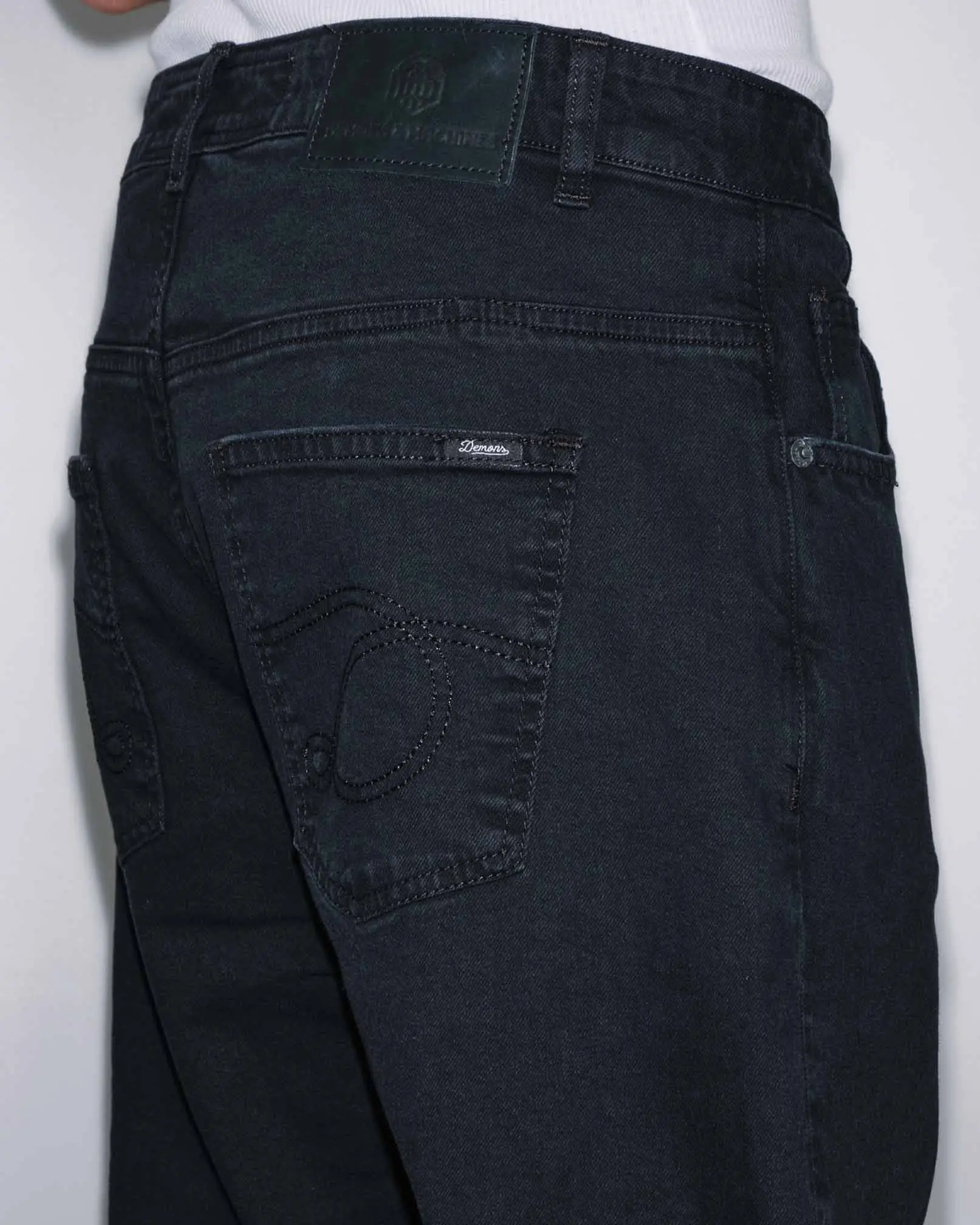 Pantalón 5 bolsillos confeccionado en bull elastizado. Lavado plain. Alegoría en bolsillos traseros con hilo al tono.
