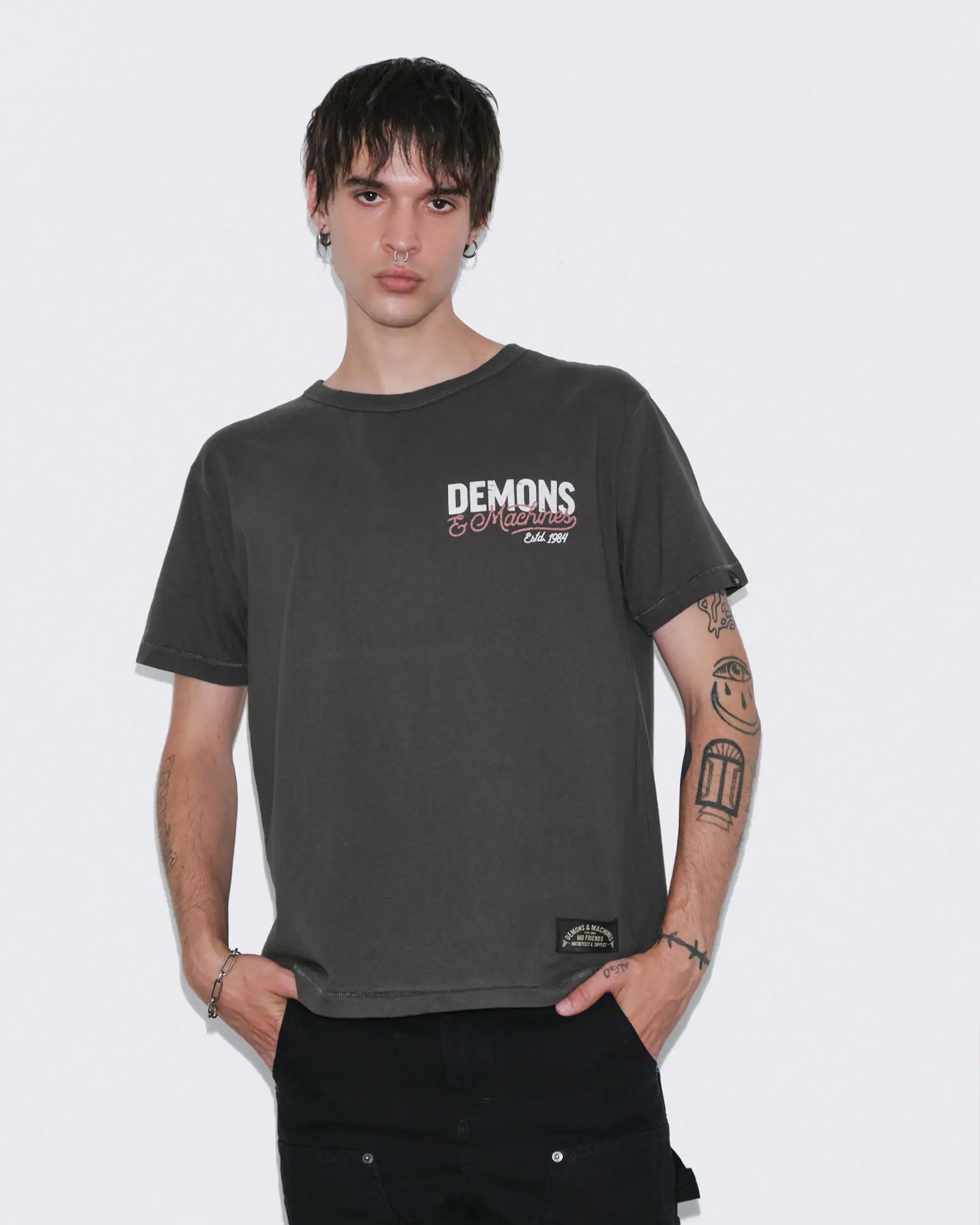 Remera manga corta confeccionada en Jersey 16/1 de algodón peinado. Calce slim y cuello terminado en collareta con complemento ribb. Bolsillo plaqué al frente. Terminaciones de mangas y ruedo en dobladillo con costura india. Suavizado sobre prenda terminada. Estampa al frente y en espalda en técnica serigrafía con relieve engomado. Composición: 100% Algodón