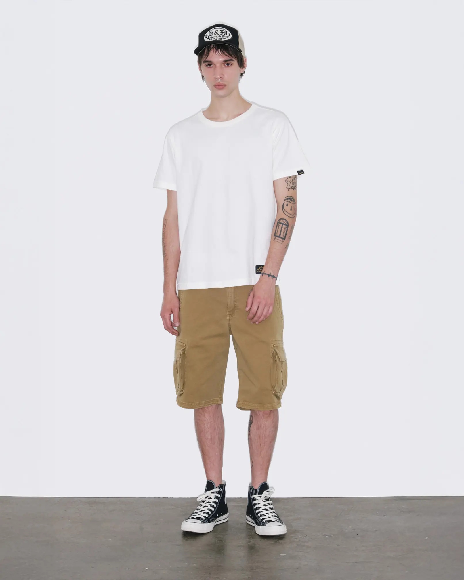 Remera manga corta confeccionada en Jersey 16/1 de algodón peinado. Calce slim y cuello terminado en collareta con complemento ribb. Terminaciones de mangas y ruedo en dobladillo con costura india. Suavizado sobre prenda terminada. Composición: 100% Algodón
